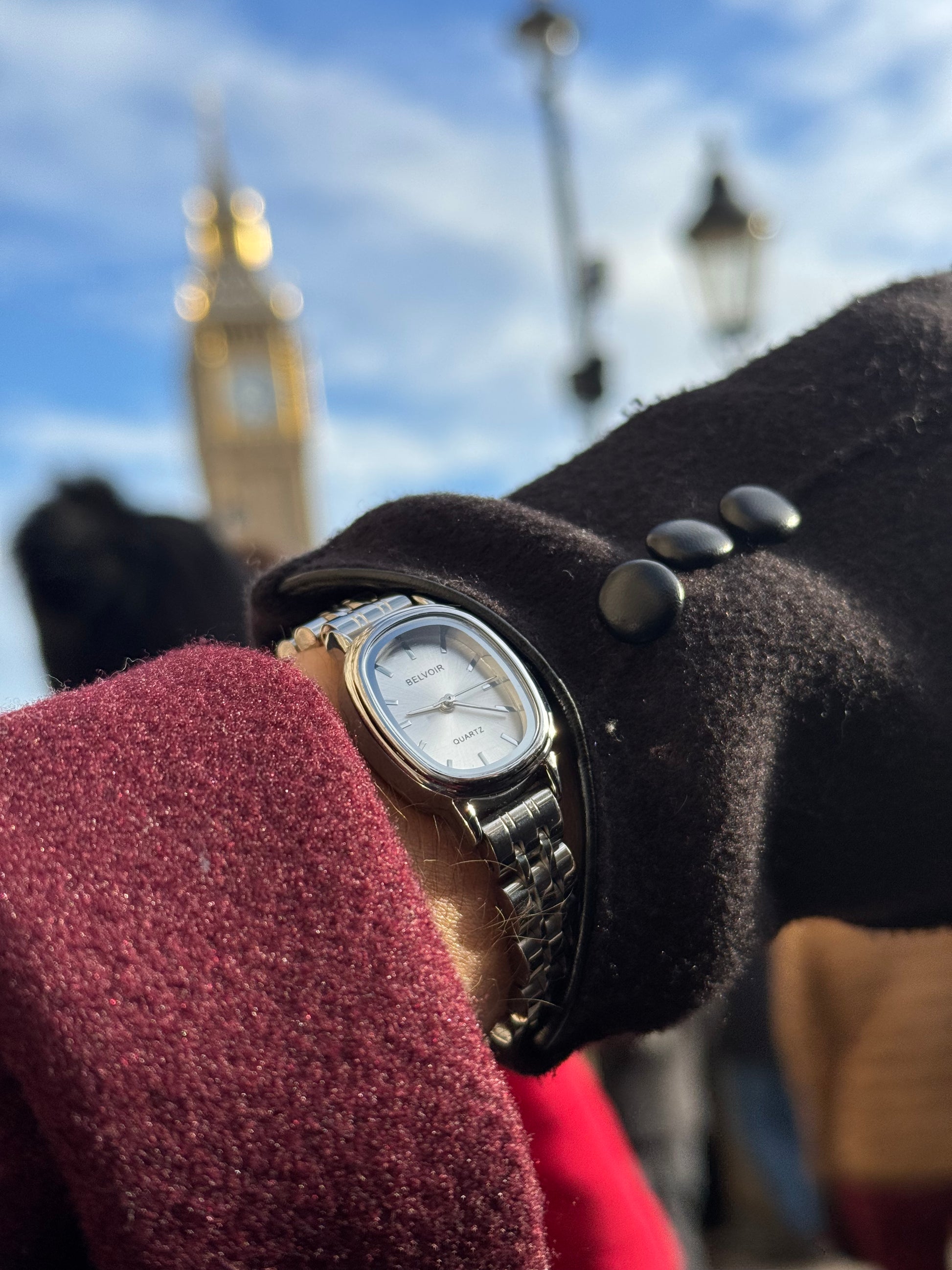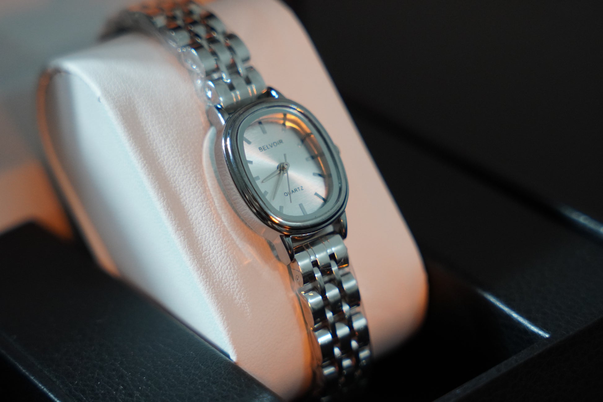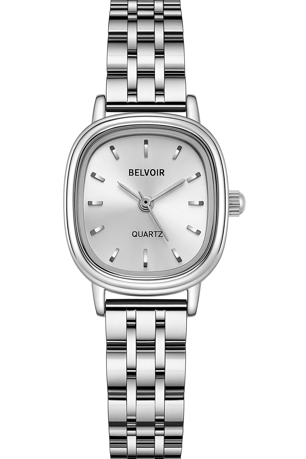 O BELVOIR Her é um relógio feminino que traduz sofisticação em cada detalhe. Seu design minimalista com caixa em aço inoxidável polido e mostrador prateado espelhado garante delicadeza e modernidade em perfeita harmonia.