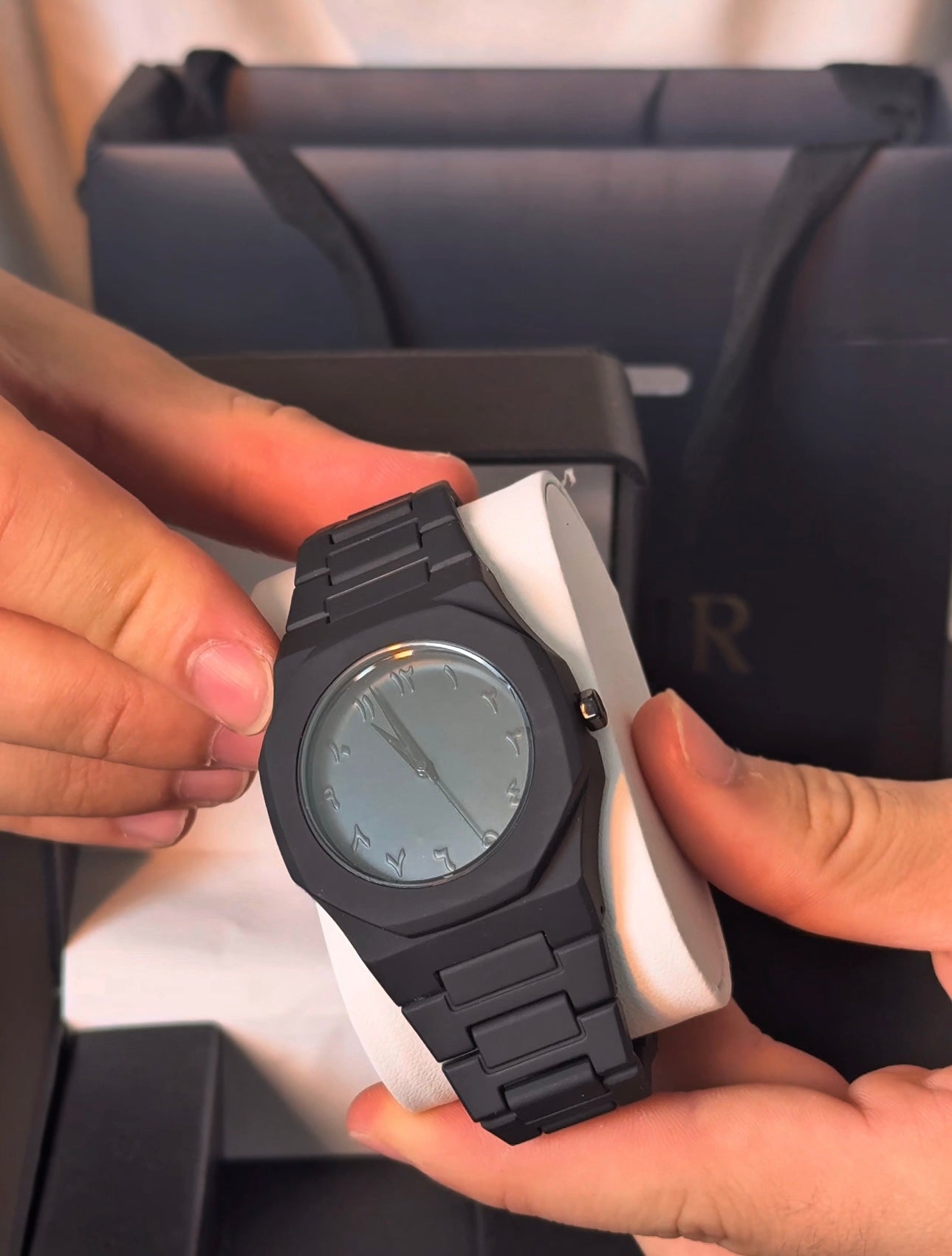 O Belvoir Noir une minimalismo contemporâneo a um detalhe marcante: seus numerais em árabe, que adicionam identidade e sofisticação ao design. Com acabamento totalmente preto e linhas limpas, transmite presença silenciosa e elegância discreta. Possui resistência à água de até 3ATM, ideal para o uso diário, e pulseira ajustável que garante conforto e encaixe perfeito no pulso. Um relógio pensado para quem valoriza estilo autêntico, detalhes refinados e uma estética atemporal.